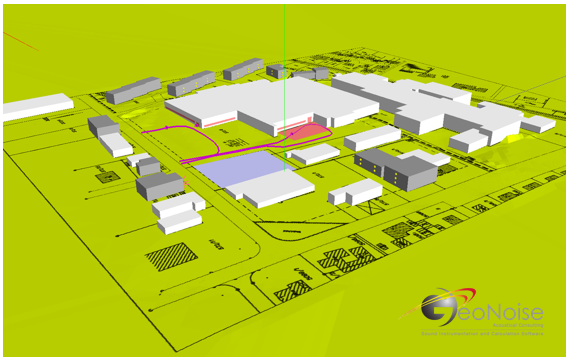 - ใช้วัตถุ mitigation เช่น กำแพงกันเสียง, พื้นที่พืชคลุม, อาคาร เพื่อจำลองการลดเสียง
